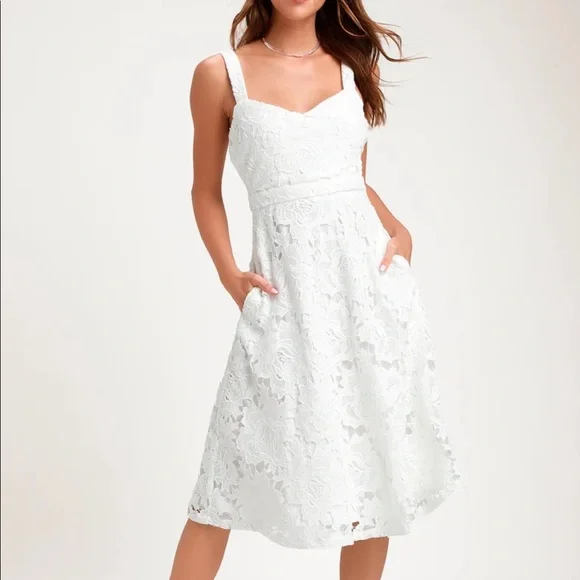 Lulu S Dresses White Lace Midi Dress Poshmark